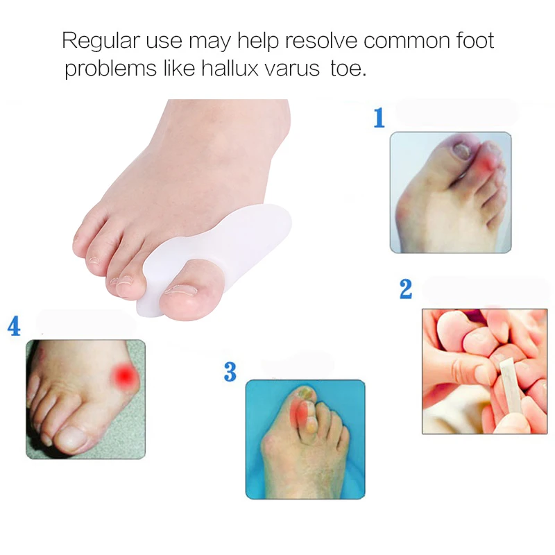Маленький и изысканный внешний вид, удобно носить с собой. Материал из силикагеля, мягкий и удобный. Предназначен для людей, страдающих от вальгусной деформации. Это может облегчить боль от согнутых пальцев, перекрещивающихся пальцев и вальгусной деформации.