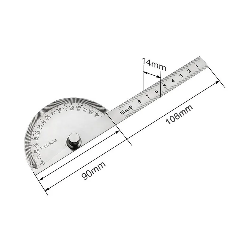 Транспортир из нержавеющей стали, с круглой головкой, с поворотным углом, линейка с металлическим рычагом, Регулируемый Многофункциональный инструмент для измерения математики