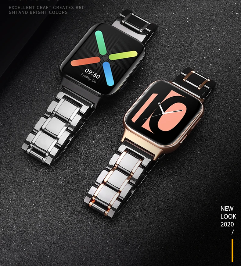 Керамический ремешок для часов Oppo 41 мм 46 мм 2020 Смарт-часы из нержавеющей стали с пряжкой-бабочкой сменный ремешок для мужчин и женщин