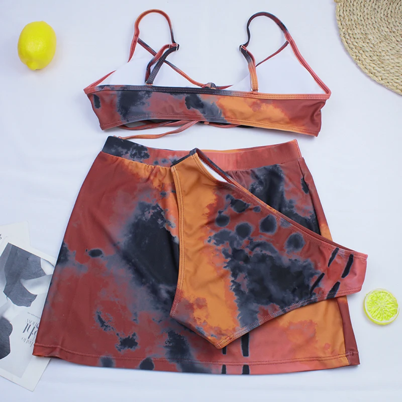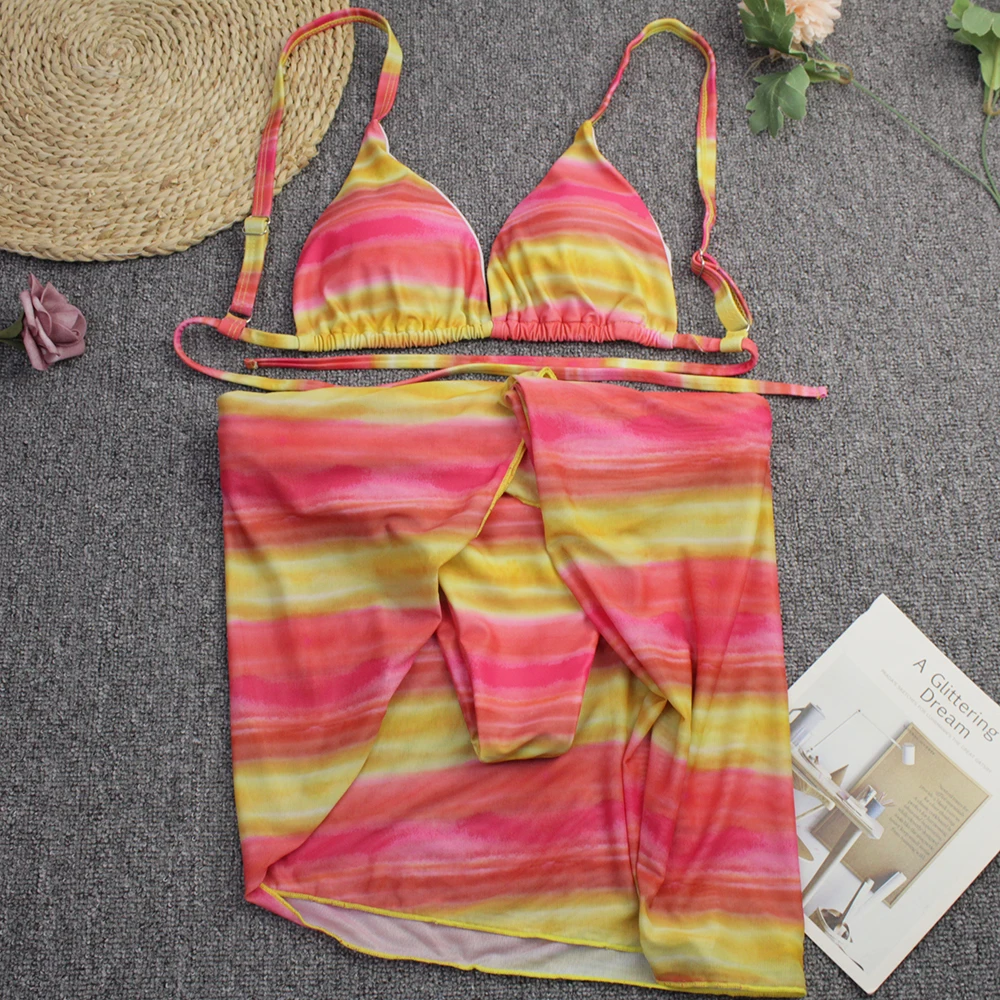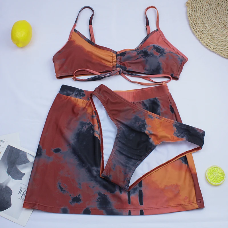 Сексуальный женский купальник Tengweng из 3 предметов, бикини пуш-ап с принтом на завязках, бразильский летний купальный костюм, бикини со стрингами, купальник 2021, юбка