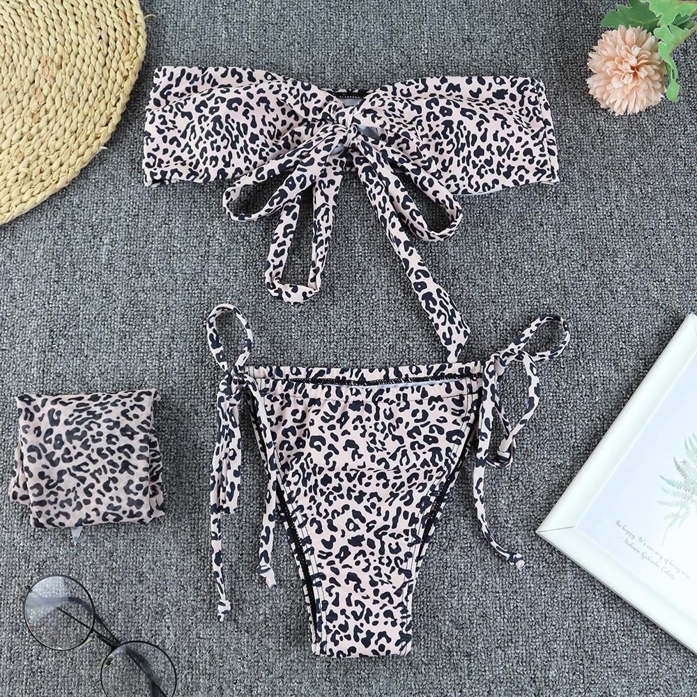 Купальник женский из 3 предметов, со шнуровкой и леопардовым принто...