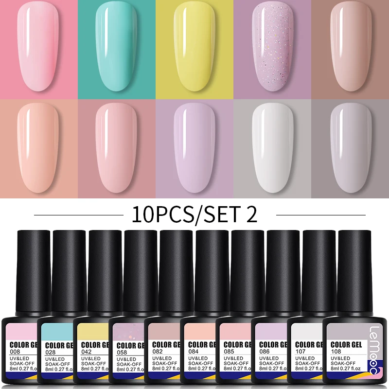 LEMOOC набор гель-лаков для ногтей Kit Vernis полуперманентный гибридный УФ-лак для базового верхнего покрытия гель для дизайна ногтей Польский Набор