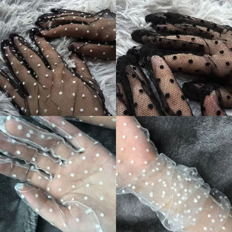 Перчатки женские тюлевые в горошек, кружевные сетчатые рукавицы с длинными рукавами, ультратонкие Свадебные митенки с пальцами, белые черные, 1 пара