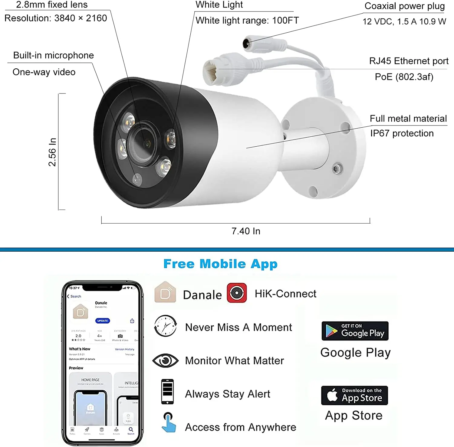 Камера видеонаблюдения Hikvision ColorVu, 8 Мп, встроенный микрофон, H.265 + IP67, 4K, POE, объектив 2,8 мм