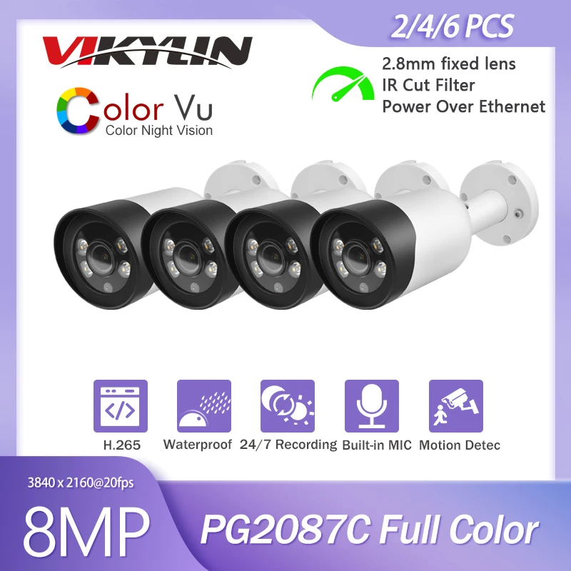 Совместимая с Hikvision IP-камера 5MP 8MP ColorVu POE Встроенный ми...