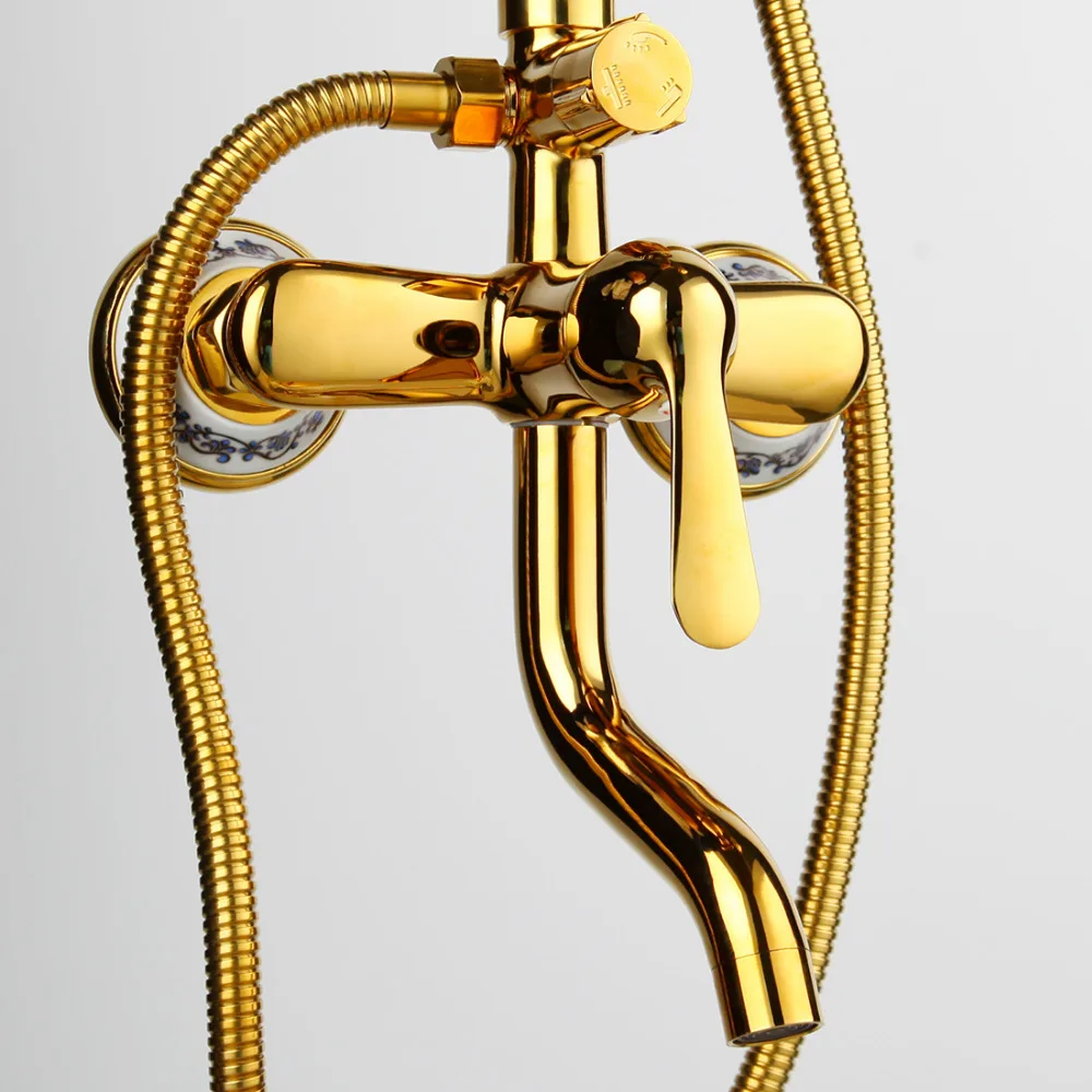 Роскошный настенный золотистый латунный смеситель для душа Monite с одной керамической ручкой Смеситель для ванны ручной душ