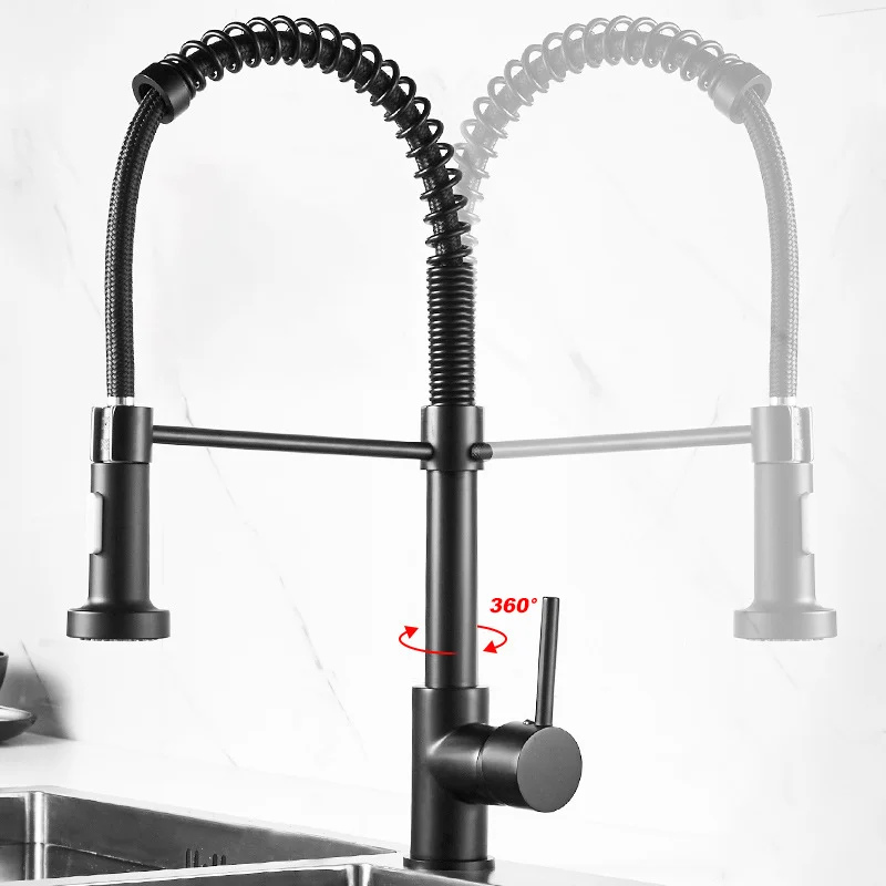 Гибкий кухонный смеситель с креплением, выдвижной кран черного цвета для горячей и холодной воды, в пружинном стиле, с распылителем