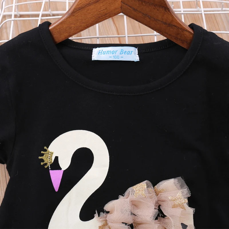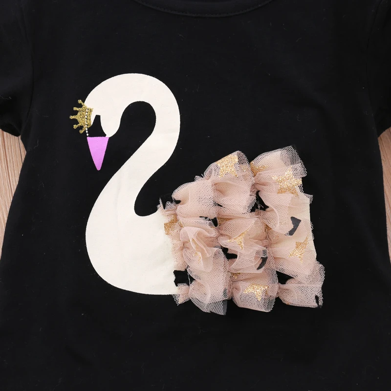 Летняя одежда для девочек футболка с короткими рукавами; Украшенного изображением лебедя; Футболка + брюки с принтом звезд из чистой ткани ажурного переплетения; Юбка; Комплект из 2 предметов; Детская одежда для костюмированной игры летняя мультфильм вечерние платье принцессы, комплект одежды для д