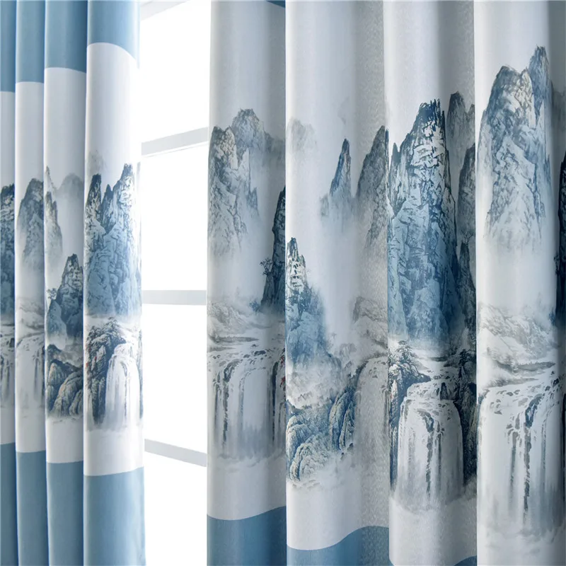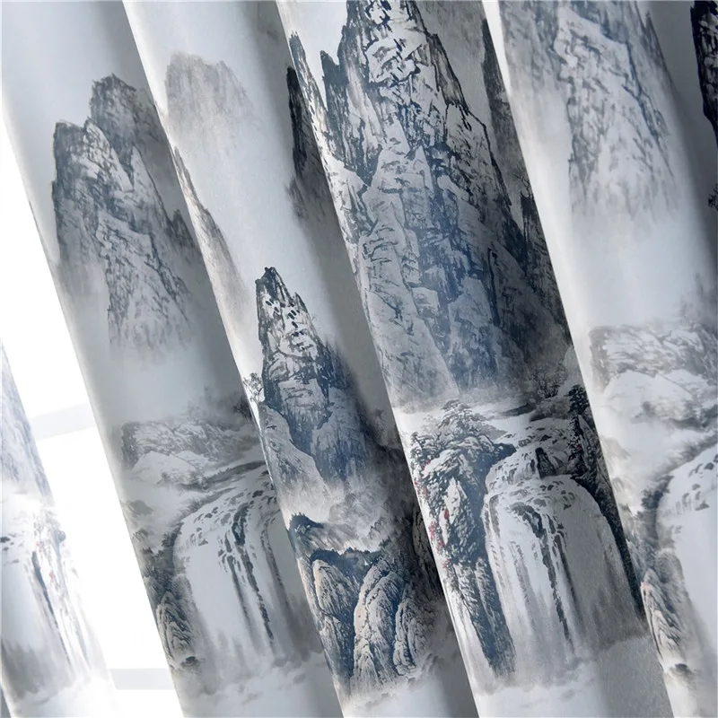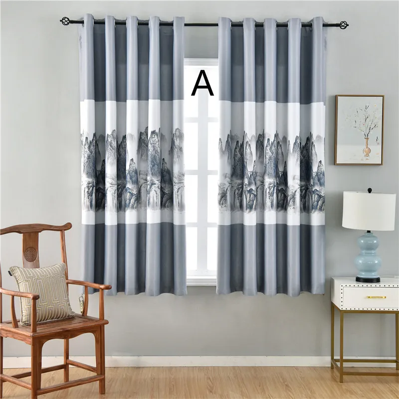 Затемняющие Короткие шторы в китайском стиле с изображением гор и рек для гостиной, спальни, кухни, оконные шторы 2JL834