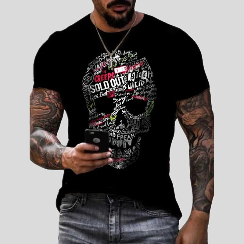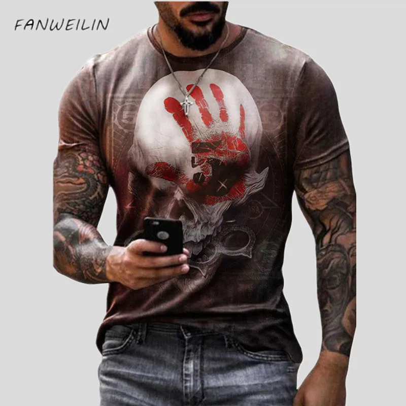 Футболка мужская оверсайз с круглым вырезом, модная рубашка с принтом черепа, с коротким рукавом, в винтажном стиле, в стиле Харадзюку, лето 2021