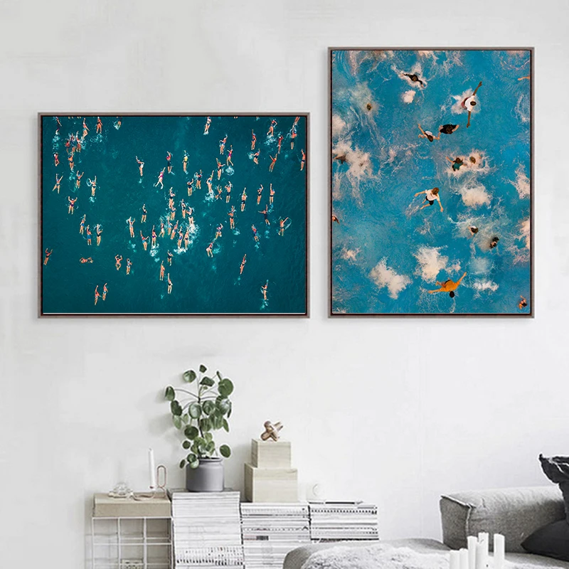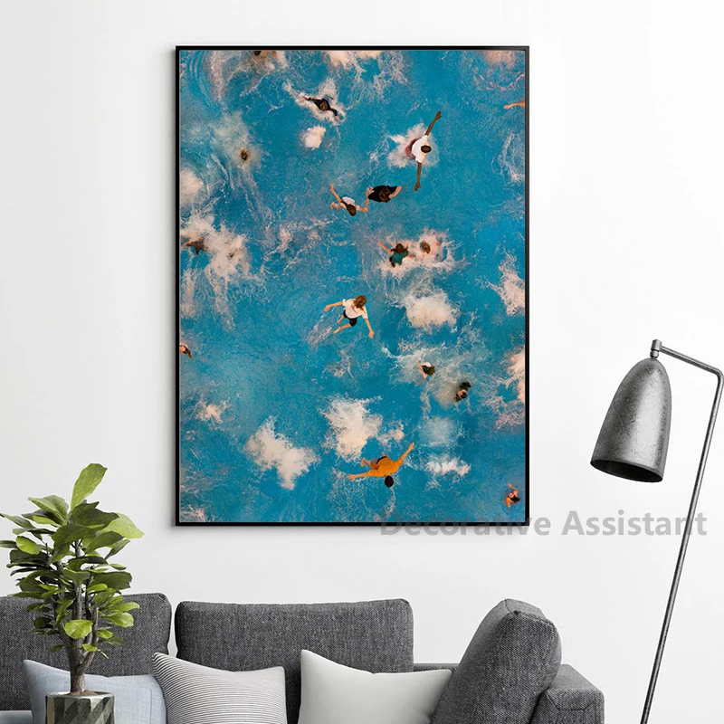Swimming Pool Aerial Photo Art Painting Picture Home Decor