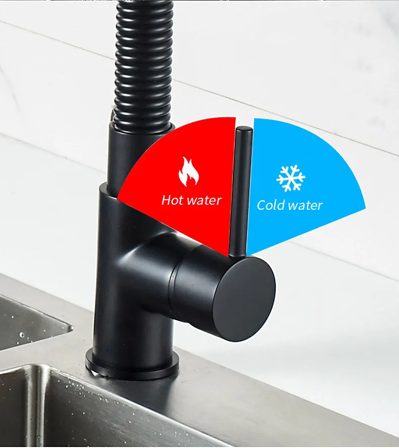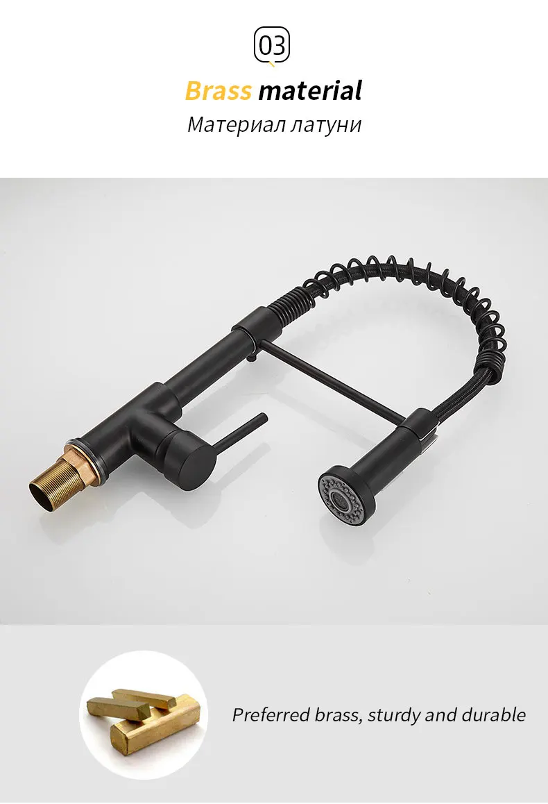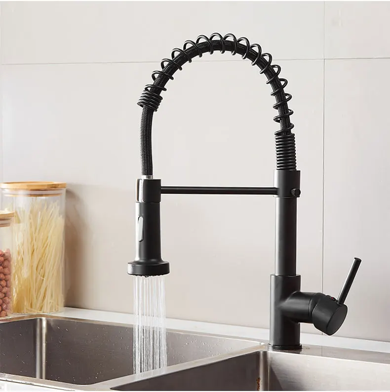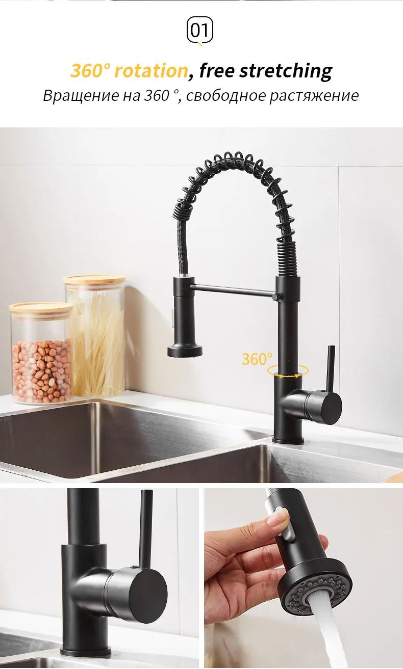 Смеситель кухонный гибкий с распылителем, кухонный кран для горячей и холодной воды, крепление на поверхность, пружинный кран, черный цвет