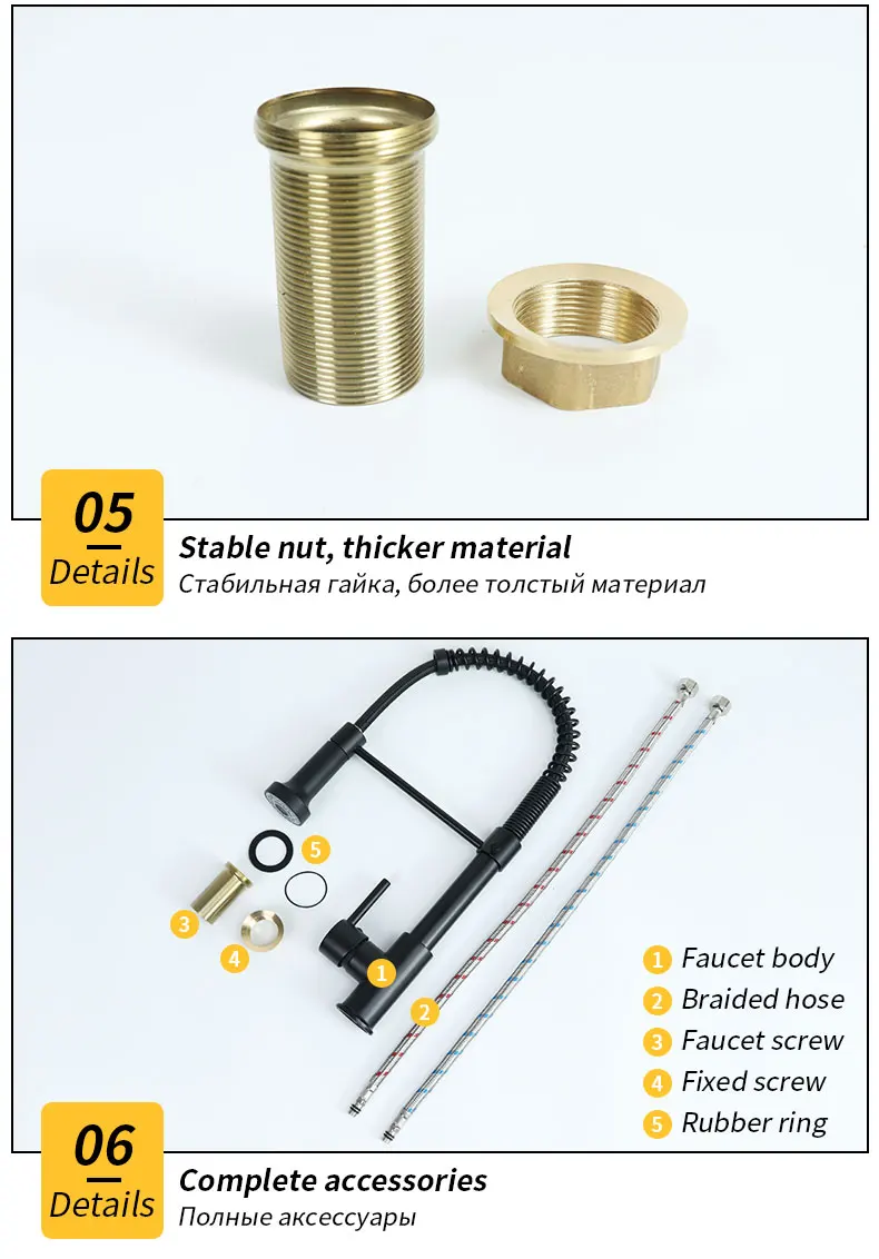 Кухонный смеситель, гибкий выдвижной кран с креплением на пружине, ...