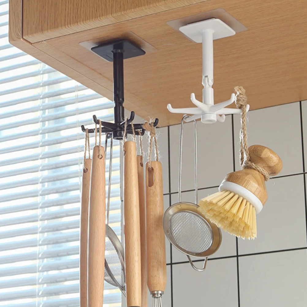 Крючки кухонные самоклеящиеся, вращающиеся на 360 градусов, 6 крючков