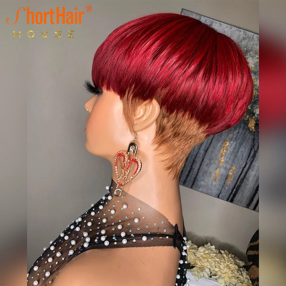 Парики 99J красного цвета с коротким вырезом Фаллоу, парики из человеческих волос Омбре для чернокожих женщин, бразильский прямой парик без кружева с естественной челкой