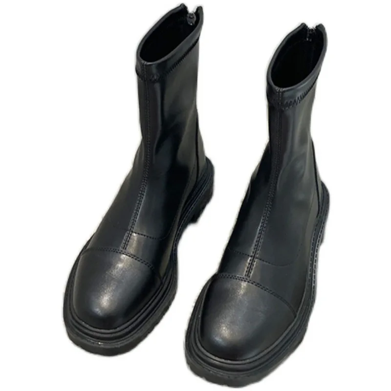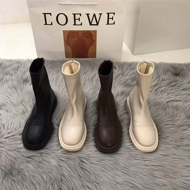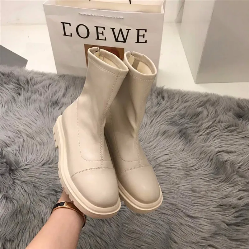 Ботинки стрейч 2021, женская обувь на платформе, Модные ботильоны с круглым носком, без застежки, женские кожаные ботинки Martin, роскошный бренд
