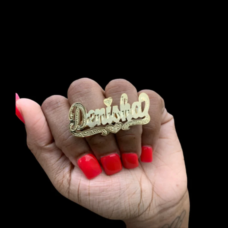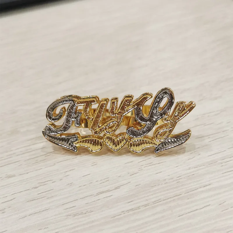 2021 новый комплект из двух цвет Гальваническое кольцо с именной табличкой Для женщин двойной Слои пользовательское имя кольцо Личность два пальца кольцо из белого золота, подарок