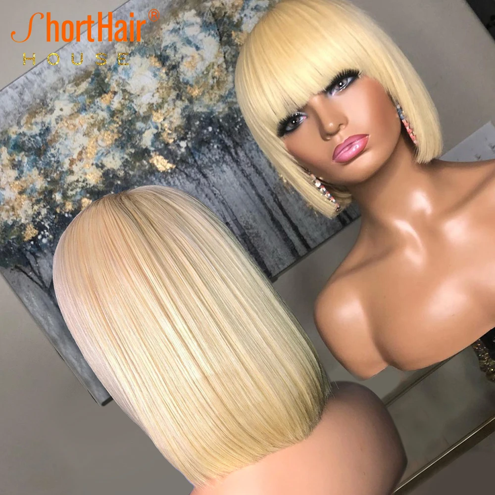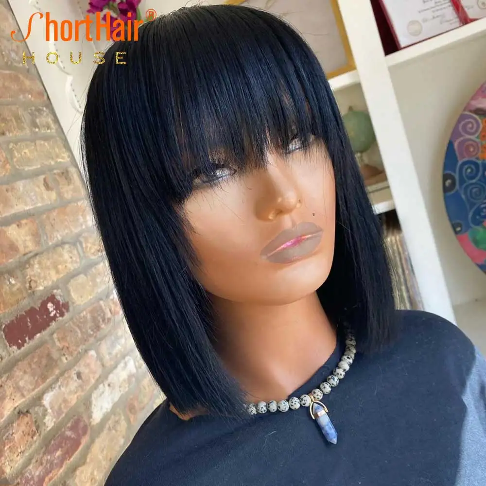 613 короткий парик с полным взрывом 100% бразильские человеческие волосы парики для женщин без кружева передний парик натуральный черный цвет парики