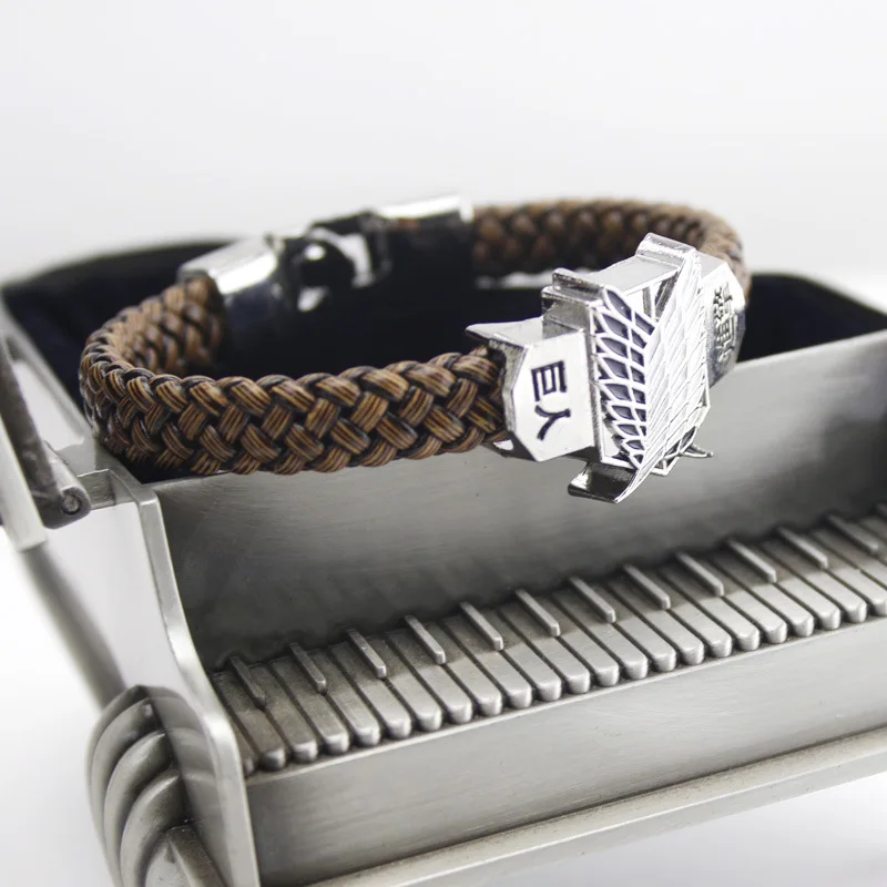 Анимэ attack on titan, браслеты с брелоками для костюмированной вечеринки scout regiment знак Новый shingeki no kyojin Микаса кожа металлический браслет в стиле панк для мужчин» (shingeki no kyojin) браслет на запястье кольцо