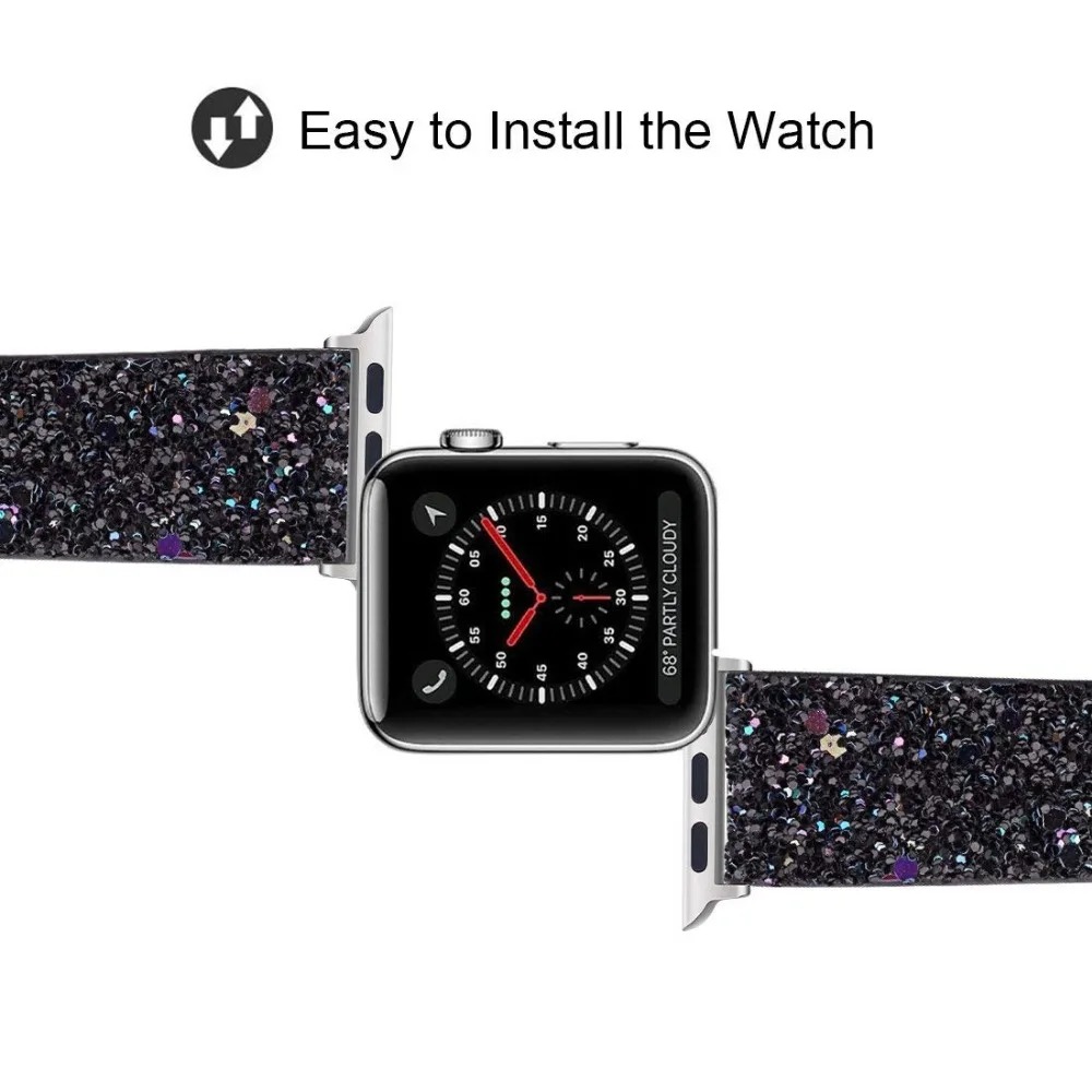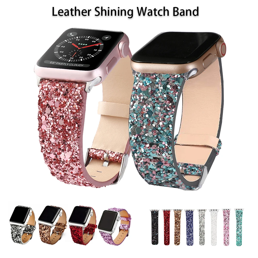 Совместимость для наручных часов Apple Watch, версии 6SE 543 38404244 мм туфли из блестящей кожи с блестками для девочек; Мини-юбка для наручных часов Iwatch, браслет на запястье яркий блеск ремень