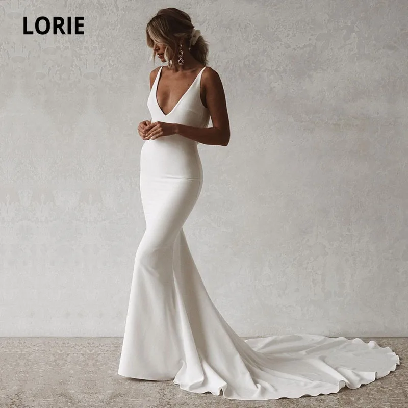 Сексуальные свадебные платья LORIE в стиле бохо с юбкой-годе, V-образным вырезом и открытой спиной, эластичное свадебное платье, простое длинное платье для невесты 2021