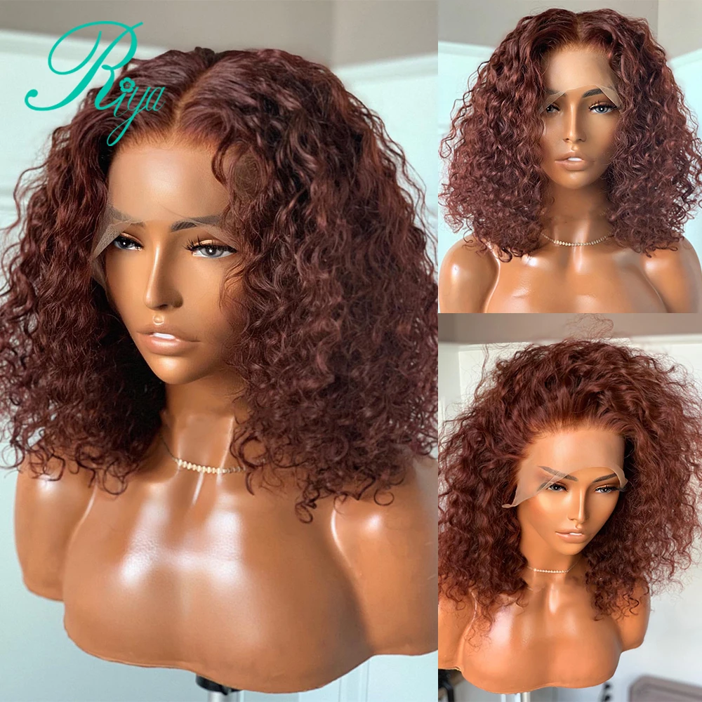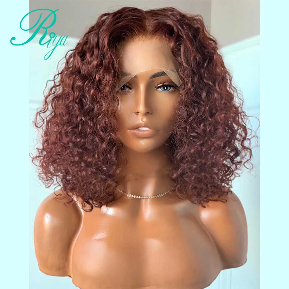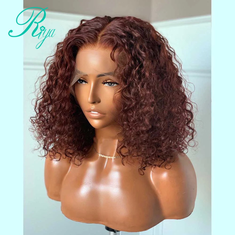 Невидимый красный бордовый 99J Цвет Короткие вьющиеся 4X4 сетка закрытия Пикси Боб стрижка тупой сетки фронта парик из натуральных волос для чернокожих женщин Реми
