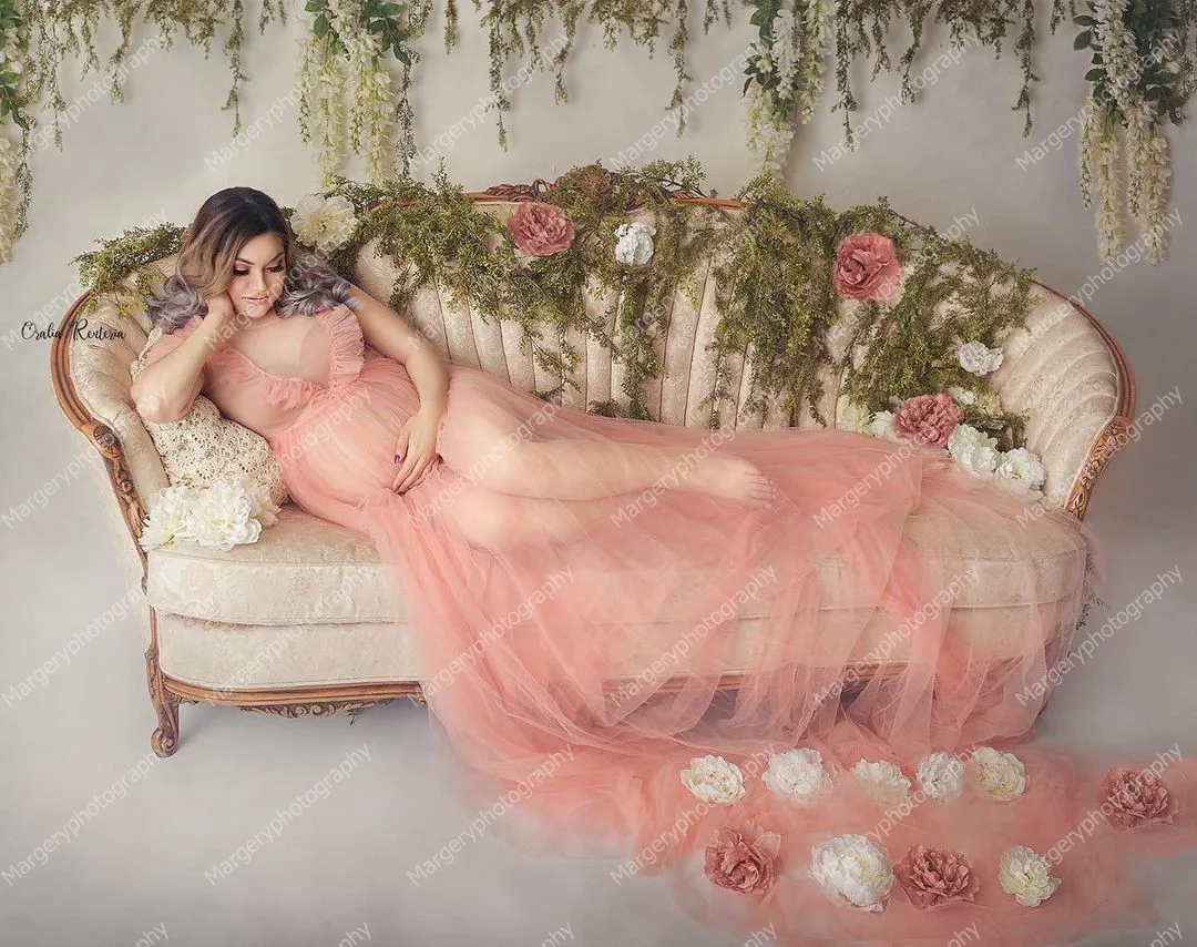 Очаровательные длинные фатиновые платья для беременных для фотосесс...