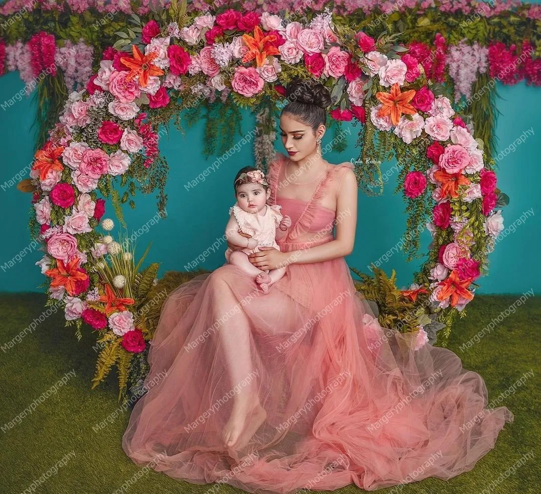 Пышное розовое Тюлевое платье для беременных женщин, длинные халаты...