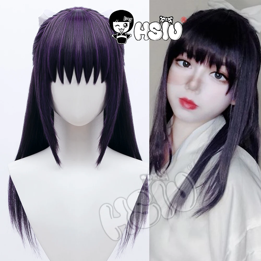 Парик Iori Utahime для косплея юдзюцу Kaisen, черно-фиолетовые смешанные длинные волосы с белым бантом, аксессуары для волос с сеткой для парика