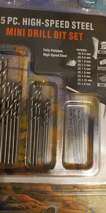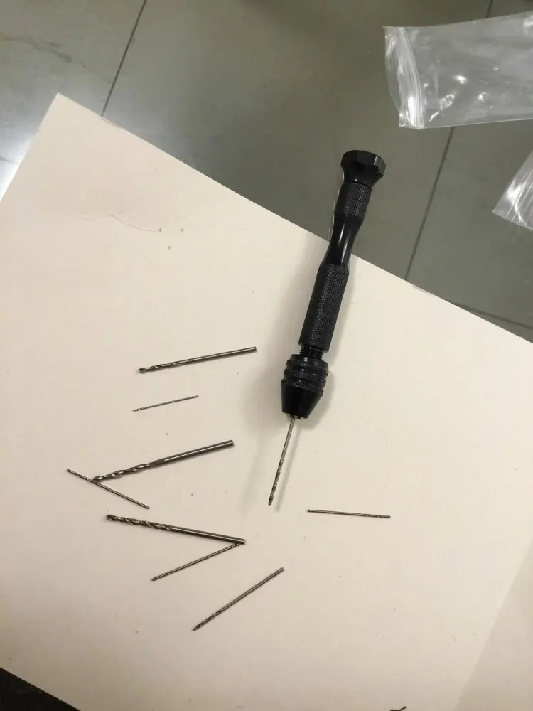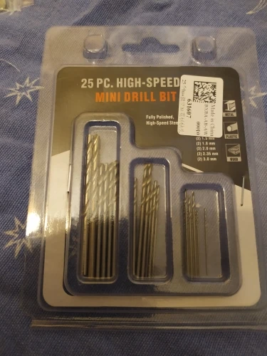 Продавец отправил быстро, комплект полный. Нет маркировки на сверлах, замеры показали: 0,5 0,6 0,7 0,8 0,9 1,0 1,2 1,5 1,8 2,0. Два самых тонких сверла просто обломаны, не имеют даже намека на заточку, но что-то карябают...