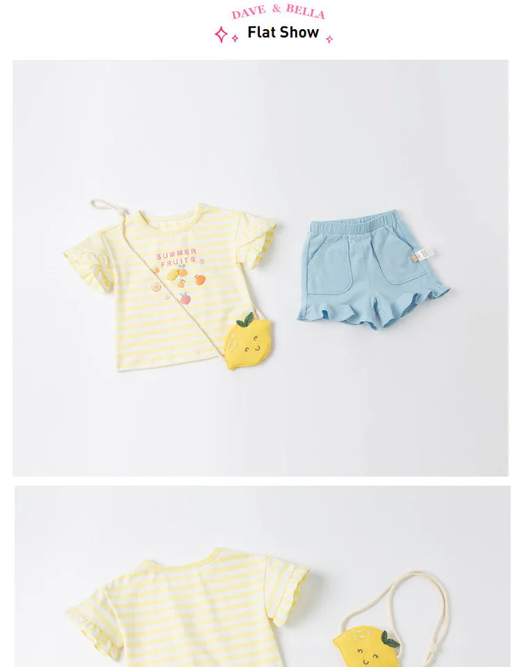 Костюм для девочек DBJ17760, Летний полосатый, с рисунком Дейва Беллы, с маленькой сумкой