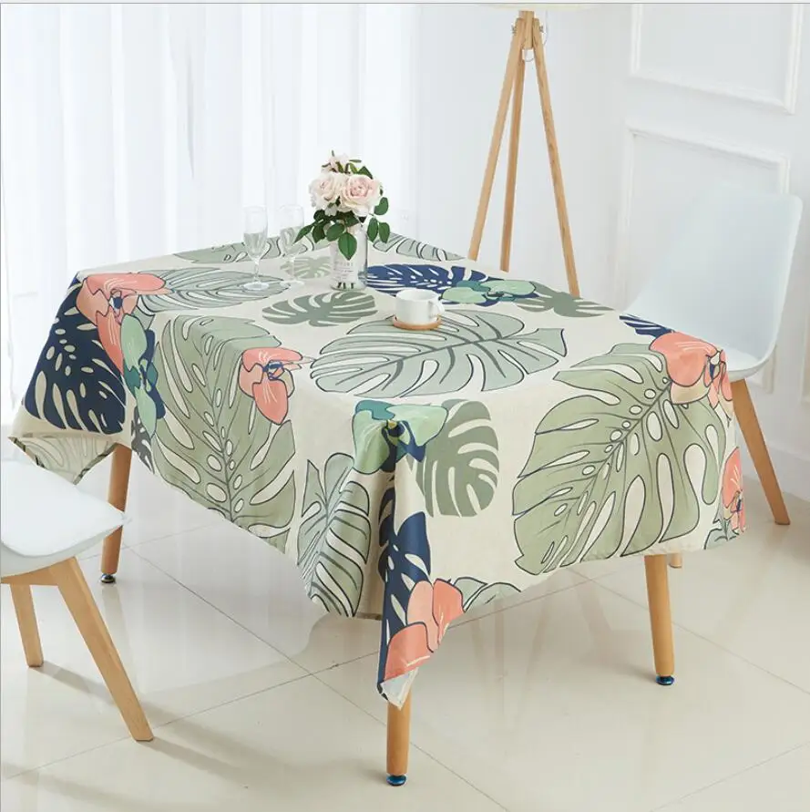 Скатерть в нордическом стиле, льняная скатерть с тропическими листь...