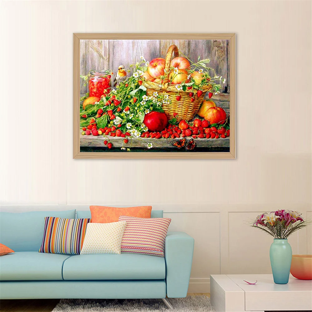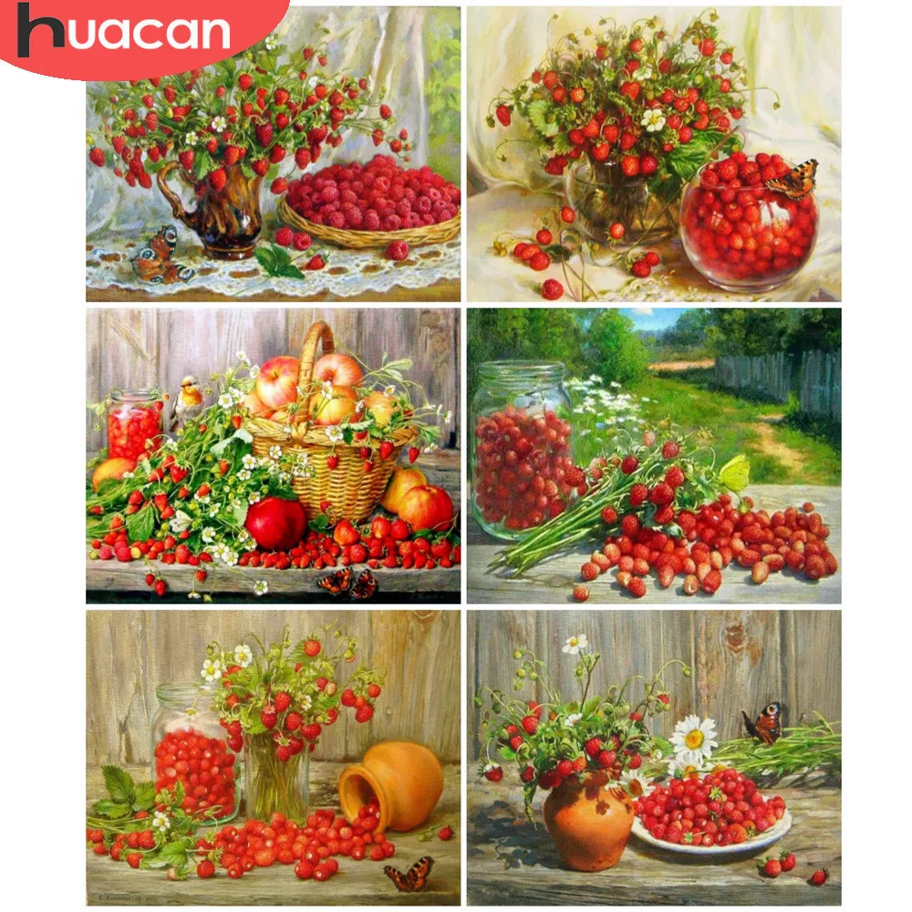 HUACAN алмазная живопись фрукты полная квадратнаякруглая Алмазная Вышивка Цветы Raspberry мозаика для рукоделия кухонный Декор