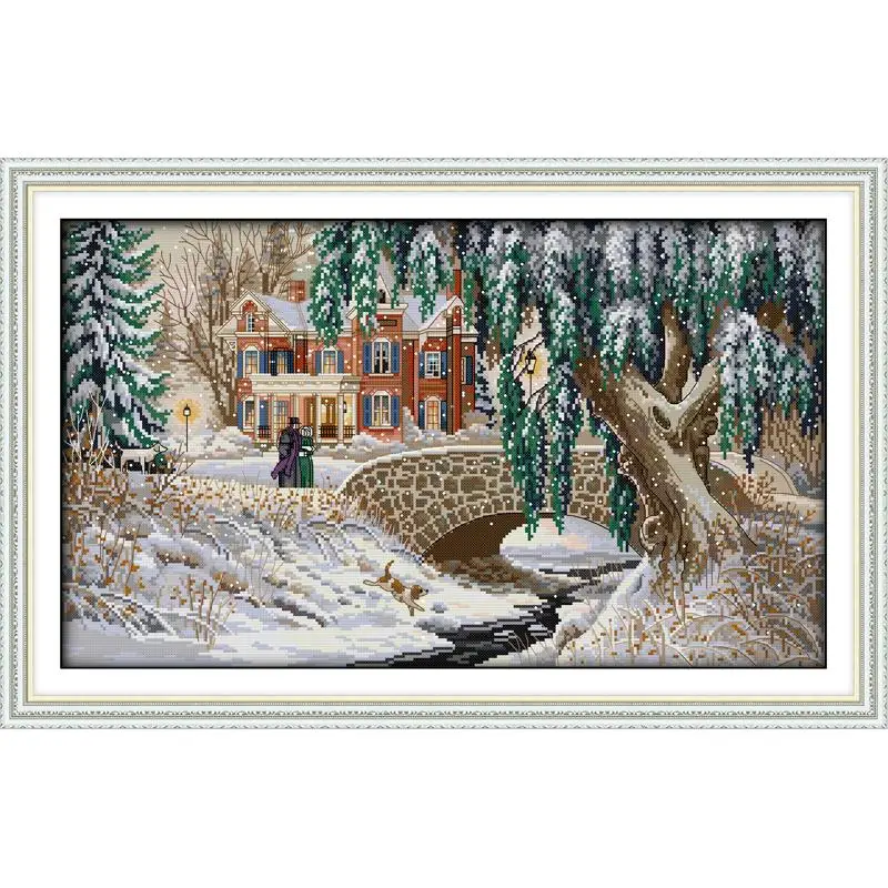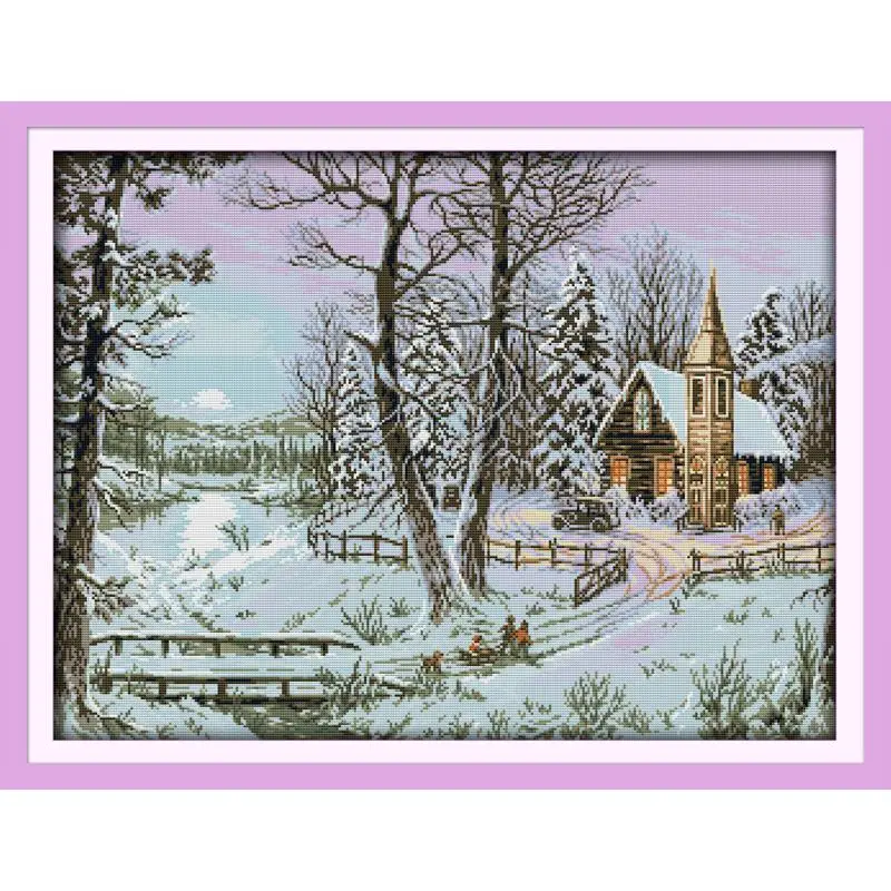 Набор для вышивки крестиком "Снежная улица", вышивка хлопковой нить...
