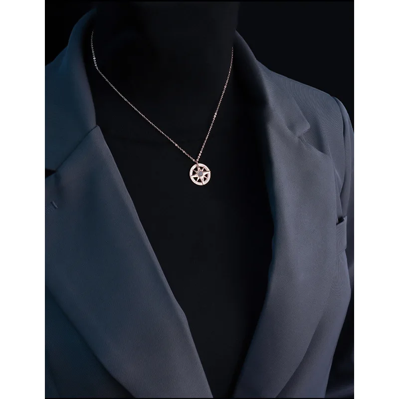 Hiyong компас Стерлинговое Серебро 925 пробы ожерелье восемь острых компас со Звездой Кулон Серебрянное колье, чокер ожерелье серебро гексаграмма подарок на день матери