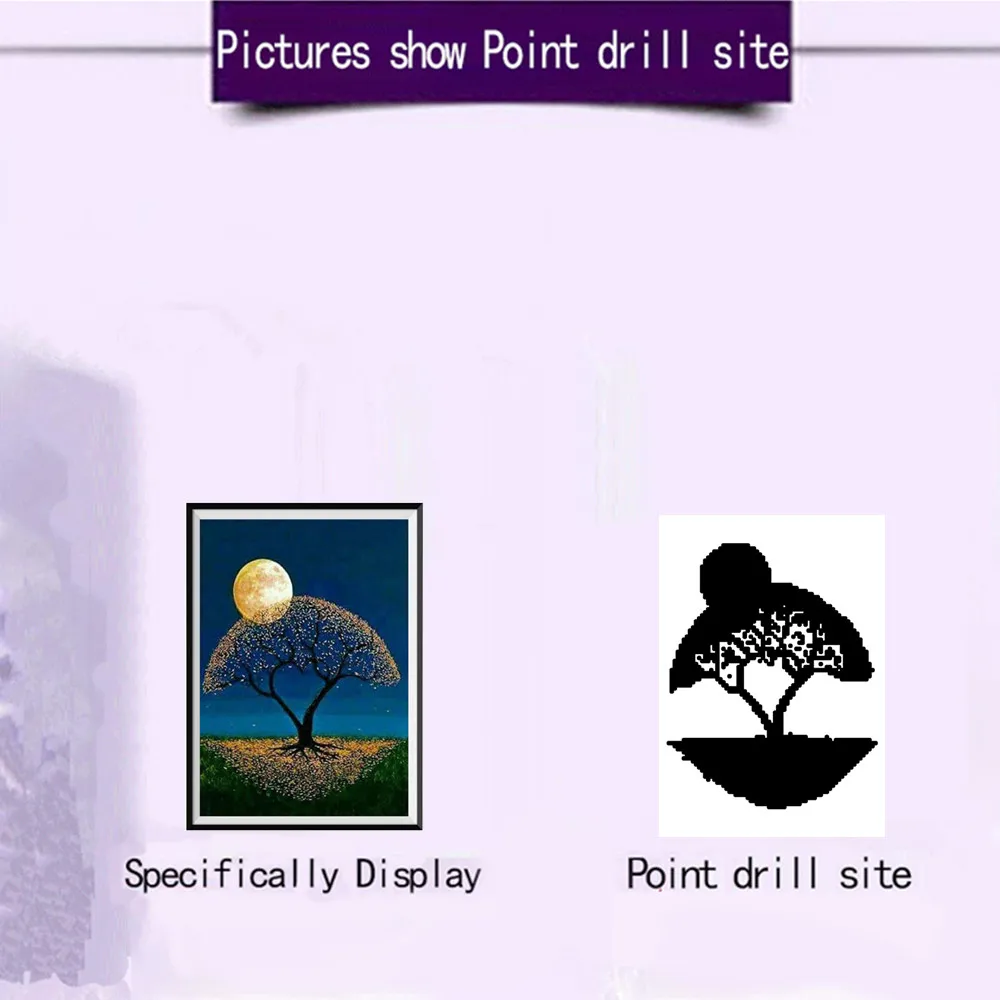 Полноформатная алмазная живопись, луна, дерево, 5D искусство, едино...