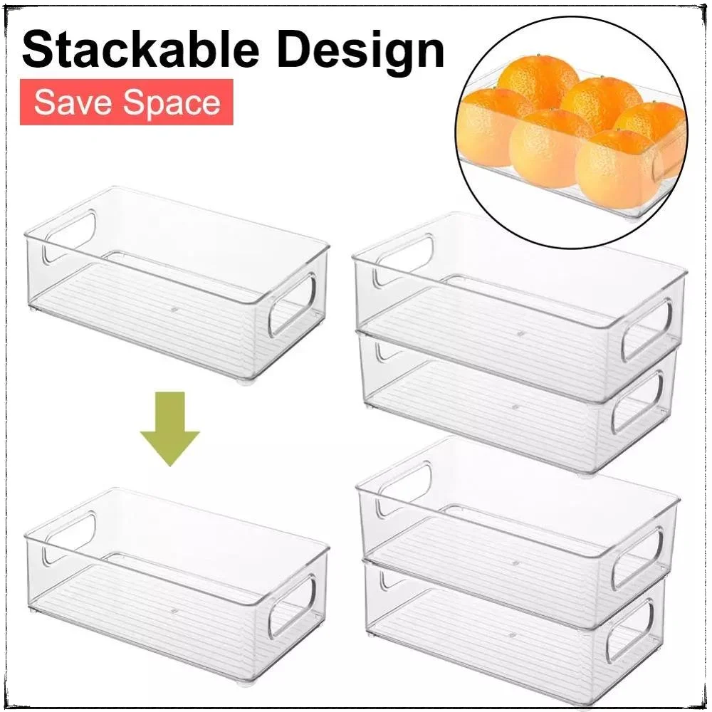 4 шт. органайзер для холодильника ящики штабелируемые холодильник организаторов с отверстием ручкой Пластик кладовая стойка для хранения пищи, Прямая поставка