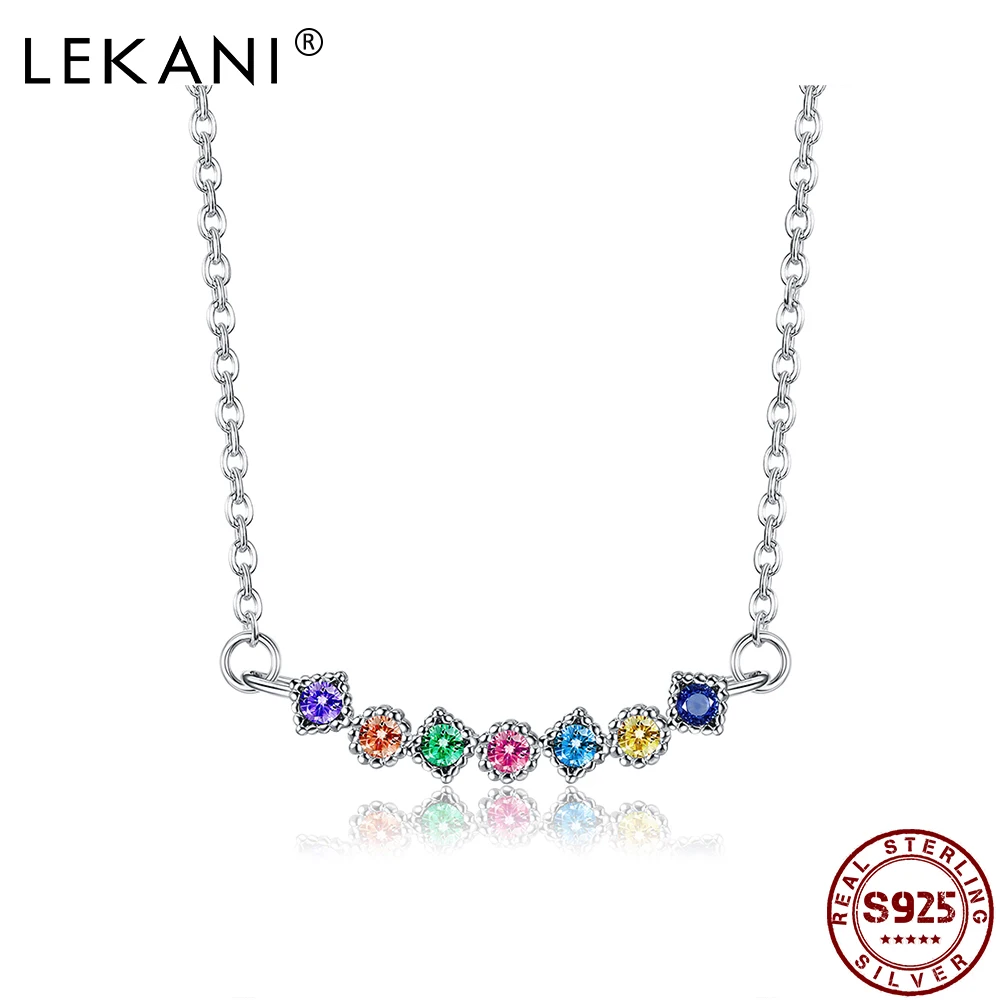 LEKANI 925 Серебряное ожерелье для женщин смайлик дизайн подвески Радуга изысканный с цирконием, ювелирное изделие, хит продаж, подарок