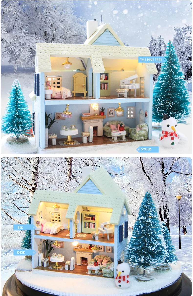Cutebee DIY миниатюрный дом с мебелью, светодиодная музыкальная Пыл...