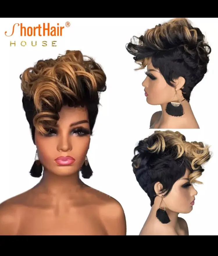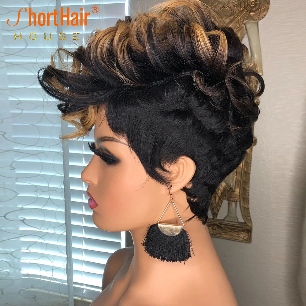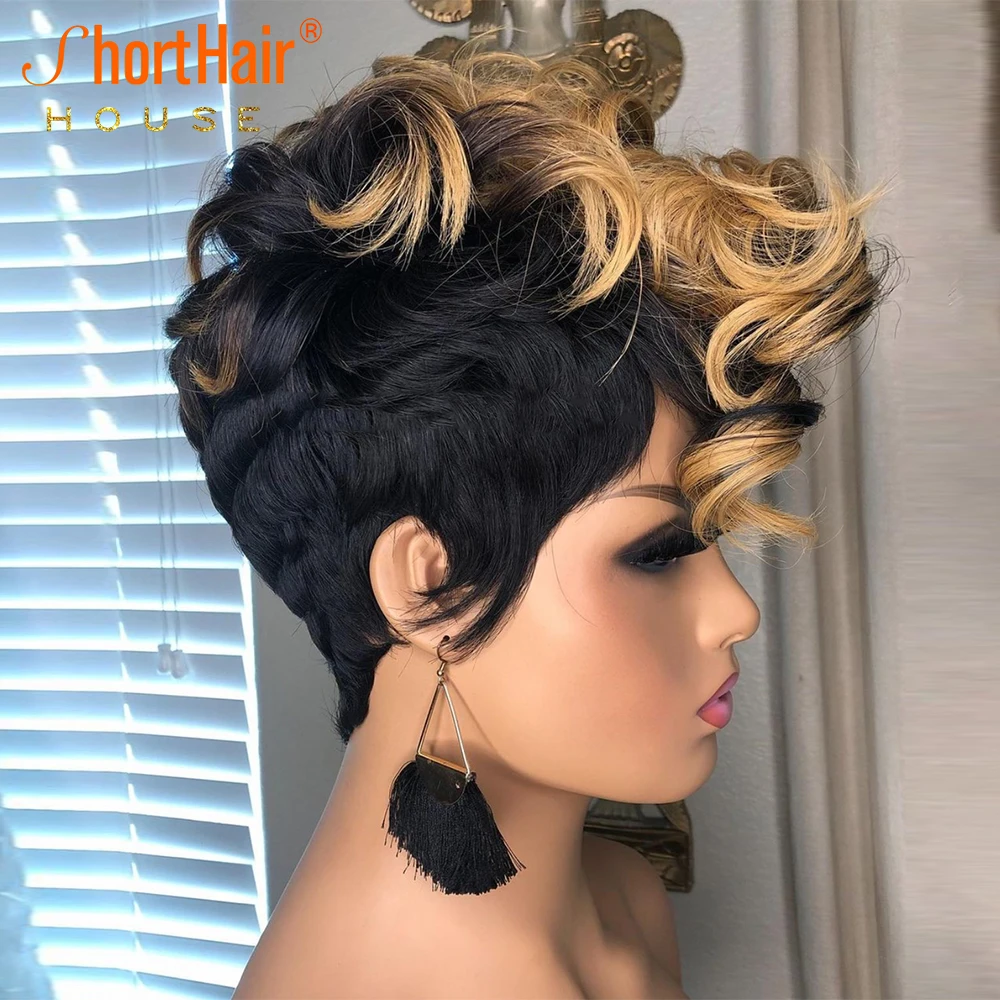 150% парик с эффектом омбре блонд цвет короткий Боб фальшивый вырез с волнистыми волосами парик для чернокожих женщин человеческие волосы хайлайтер Омбре вьющийся парик