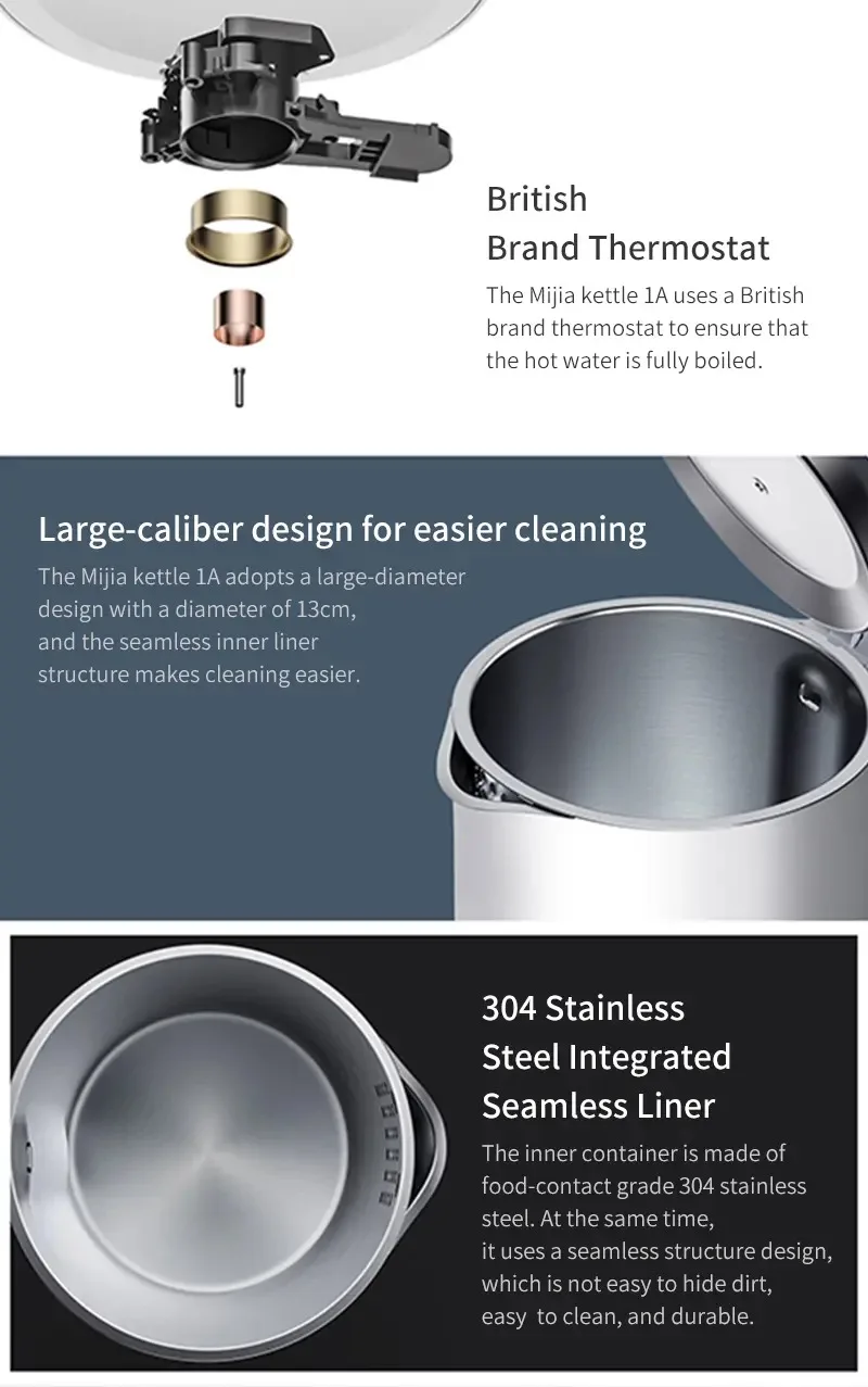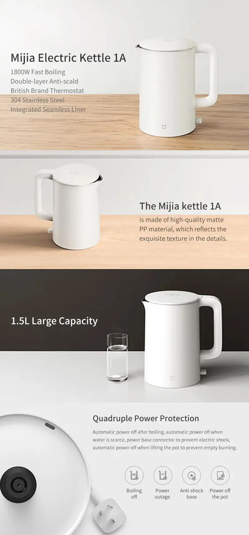 Xiaomi Mijia Электрический чайник 1A 1.5L быстрое кипячение Мгновенное нагревание 1800 Вт Автоматическое отключение питания 304 чайник для воды из нержавеющей стали