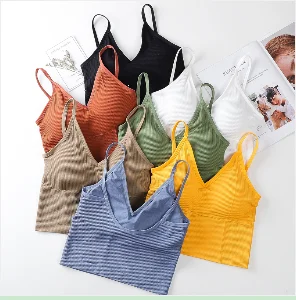 Женский сексуальный укороченный топ в полоску, хлопковый бюстгальте...