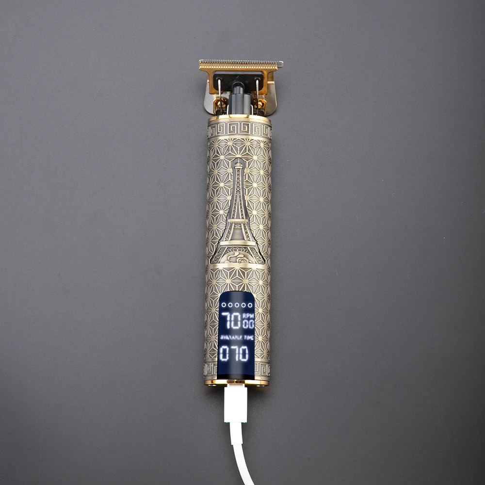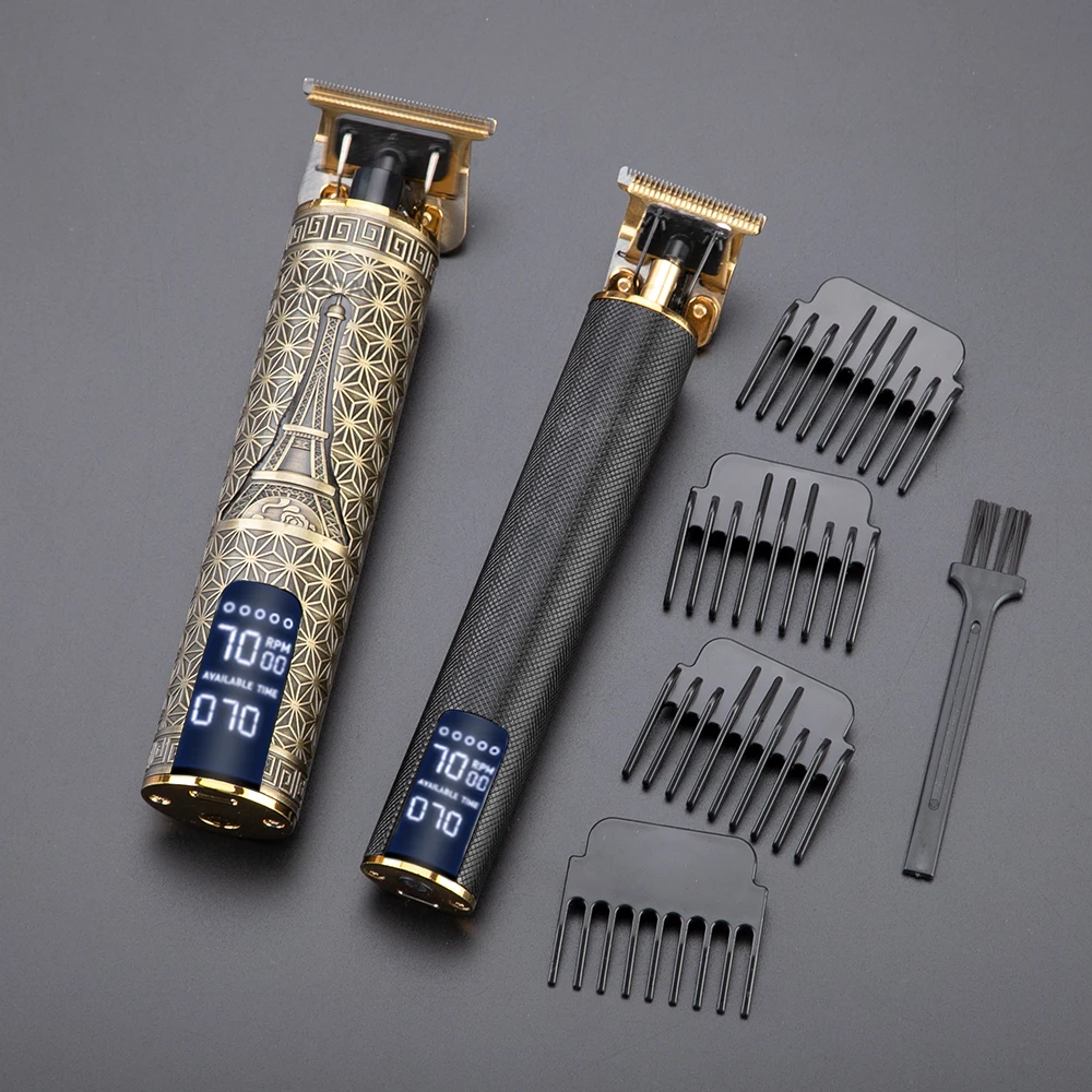 Мужская профессиональная машинка для стрижки волос в коробке, аккумуляторная беспроводная машинка с ЖК-дисплеем, триммер 0 мм
