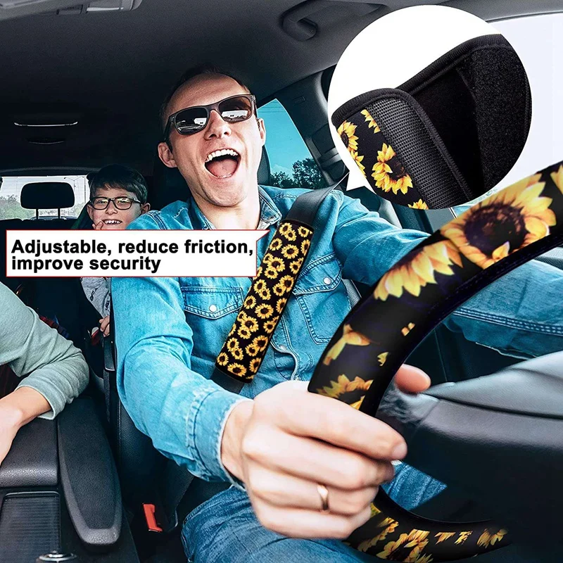 16 шт. автомобильные аксессуары для подсолнуха для женщин, чехол на руль, ремень безопасности Coaster, брелоки, ремешок для салона автомобиля