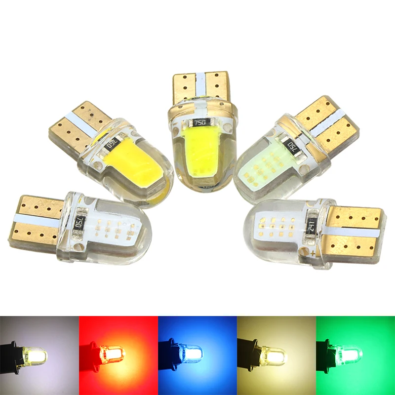 10 шт., силиконовые светодиодные лампы T10 W5W COB Canbus