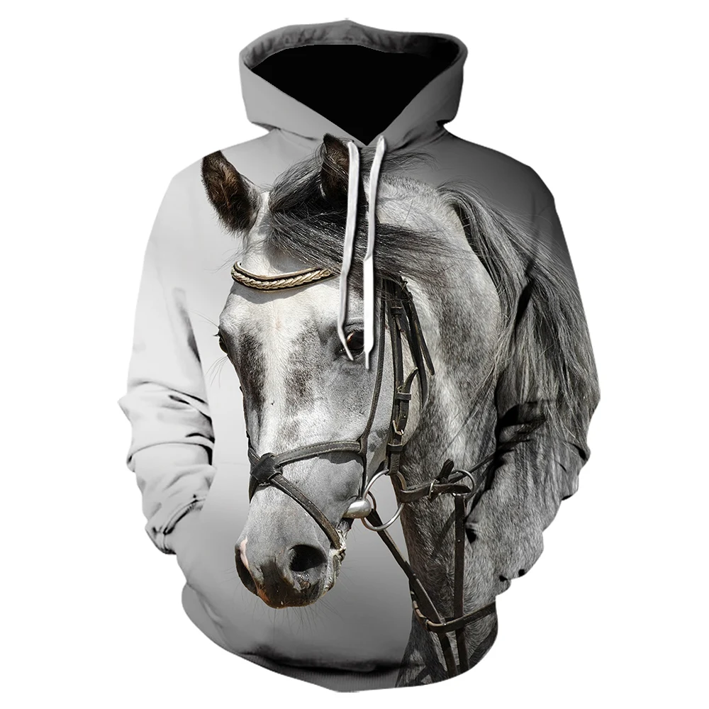 Толстовка с капюшоном и 3D-принтом лошади, толстовки, мужская и жен...