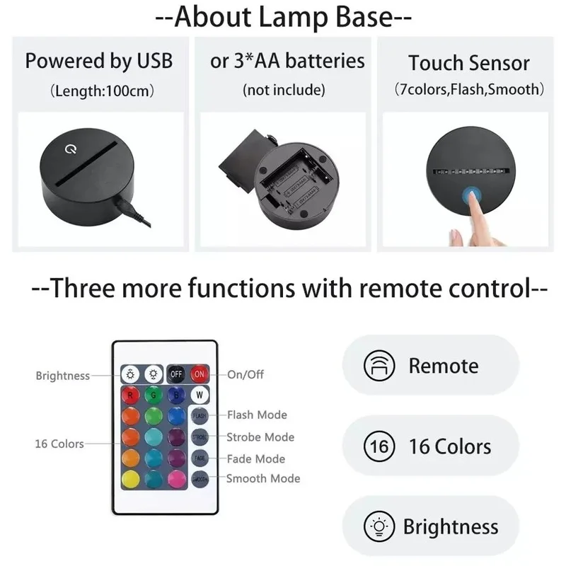 Режим дистанционного управления: дистанционное управление с включением/выключением, 16 цветов, регулируемая яркость, режим вспышки, плавный режим.