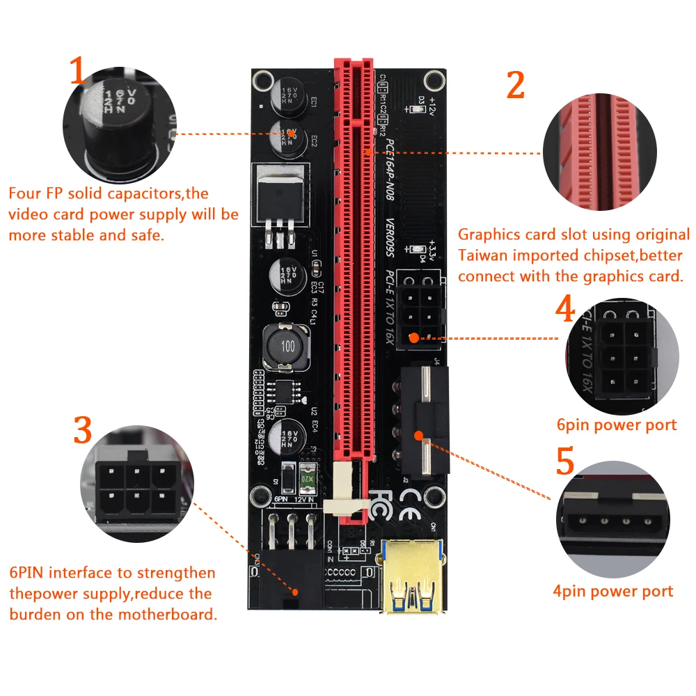 6 шт. COVYIV 009s PCI E Райзер-карта PCI-EPCIE USB 3,0 до 6 контакт...