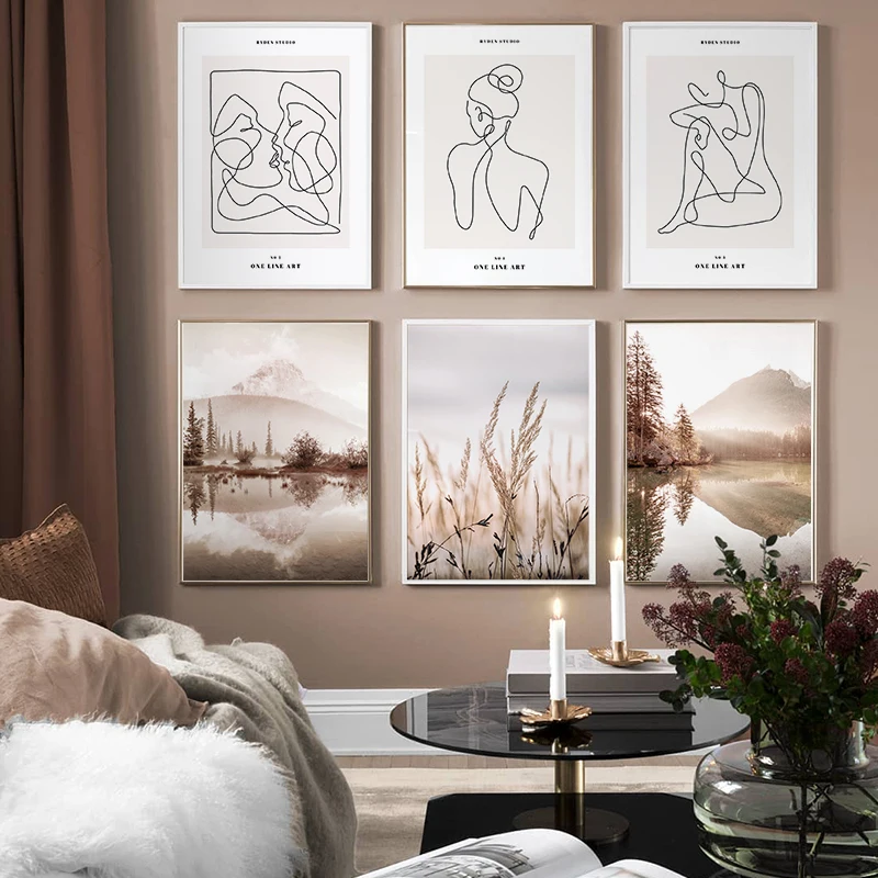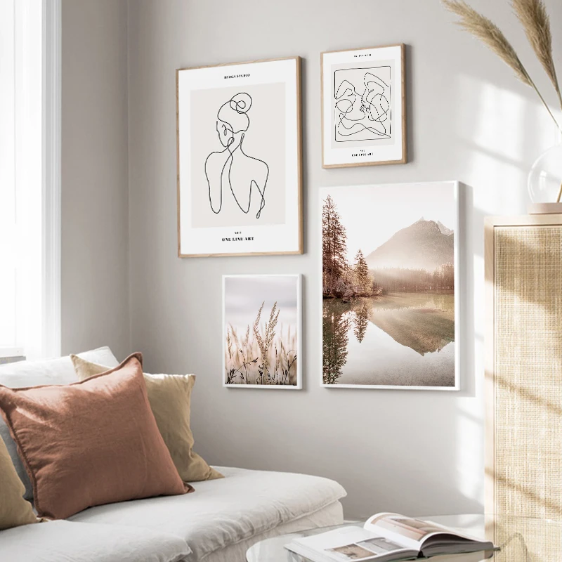 Скандинавская Картина на холсте плакат абстрактного искусства линия...