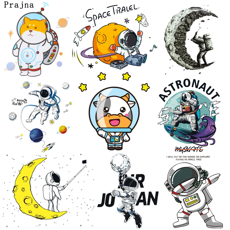 Симпатичные нашивки Prajna с космосом, астронавтом, термонаклейка на одежду, теплопередающие виниловые нашивки для одежды, детская футболка, аппликация в виде Луны